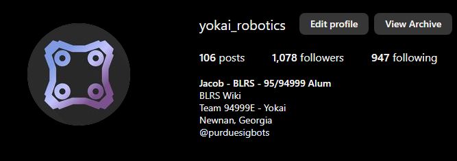 Created robotics team Instagram account, grew to 1,078 followers – among the most followed in the community.